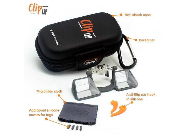 Clip Up er en evolusjon for alle brillebrukere. Bare klipp det på dine egne briller og sikre partneren din komfortabelt.
